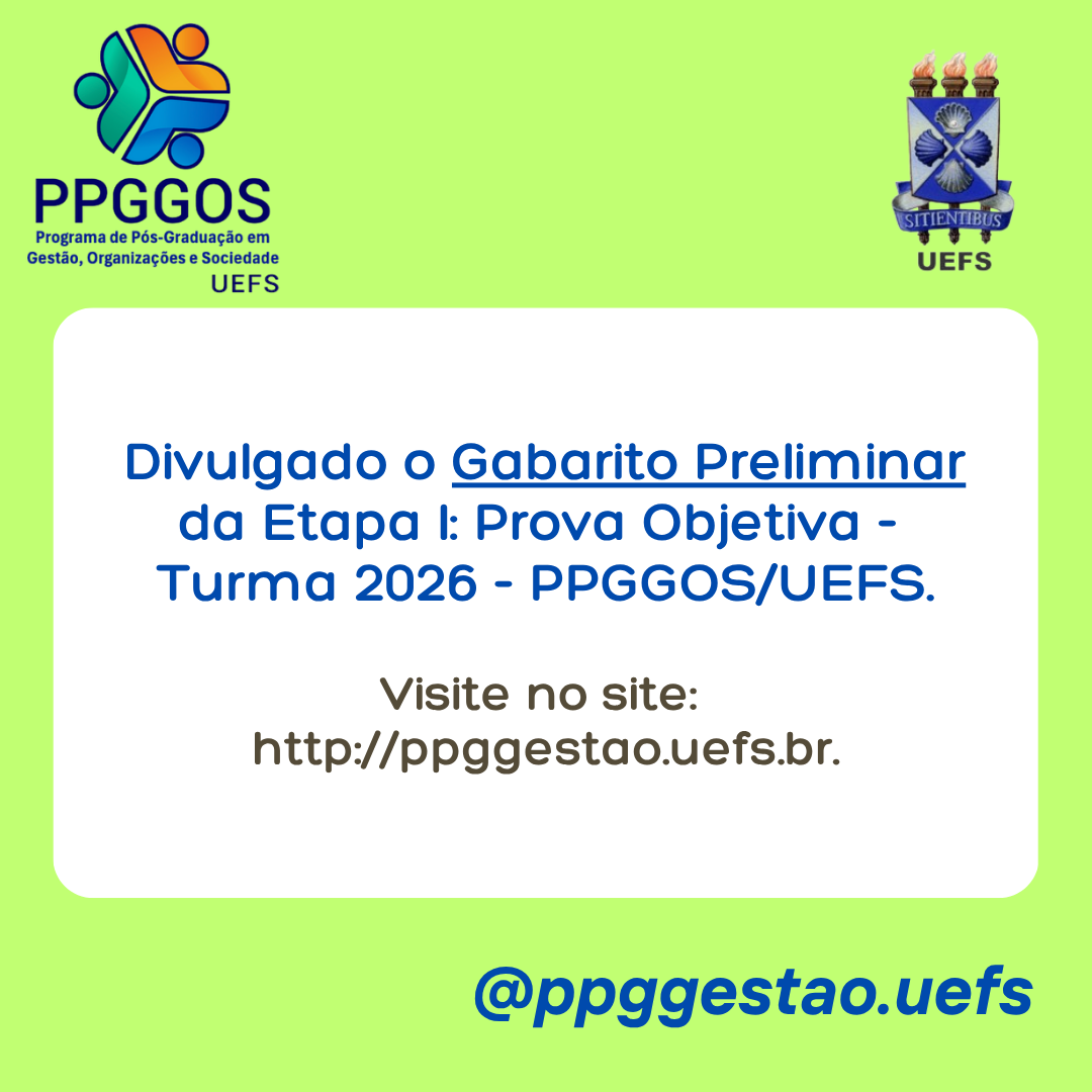Publicados o gabarito definitivo e o resultado preliminar da Prova Objetiva – PPGGOS/Uefs 2026