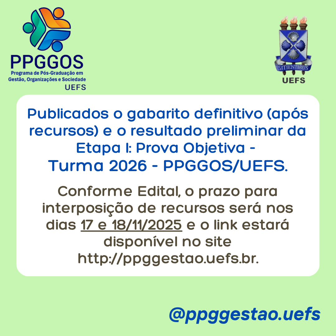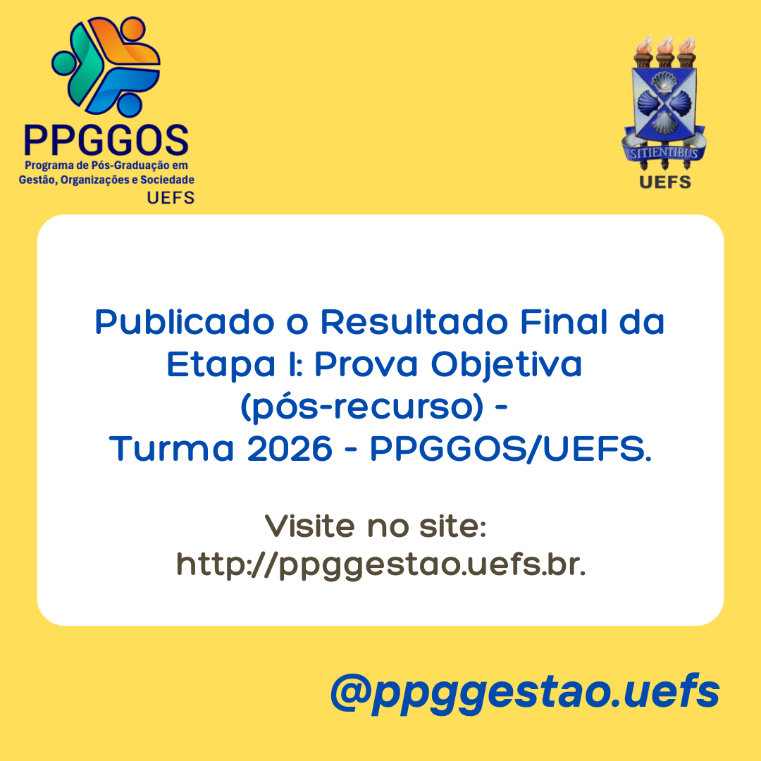 Resultado final (pós-recurso) da Etapa I: Prova Objetiva do Processo Seletivo 2026 – PPGGOS/Uefs